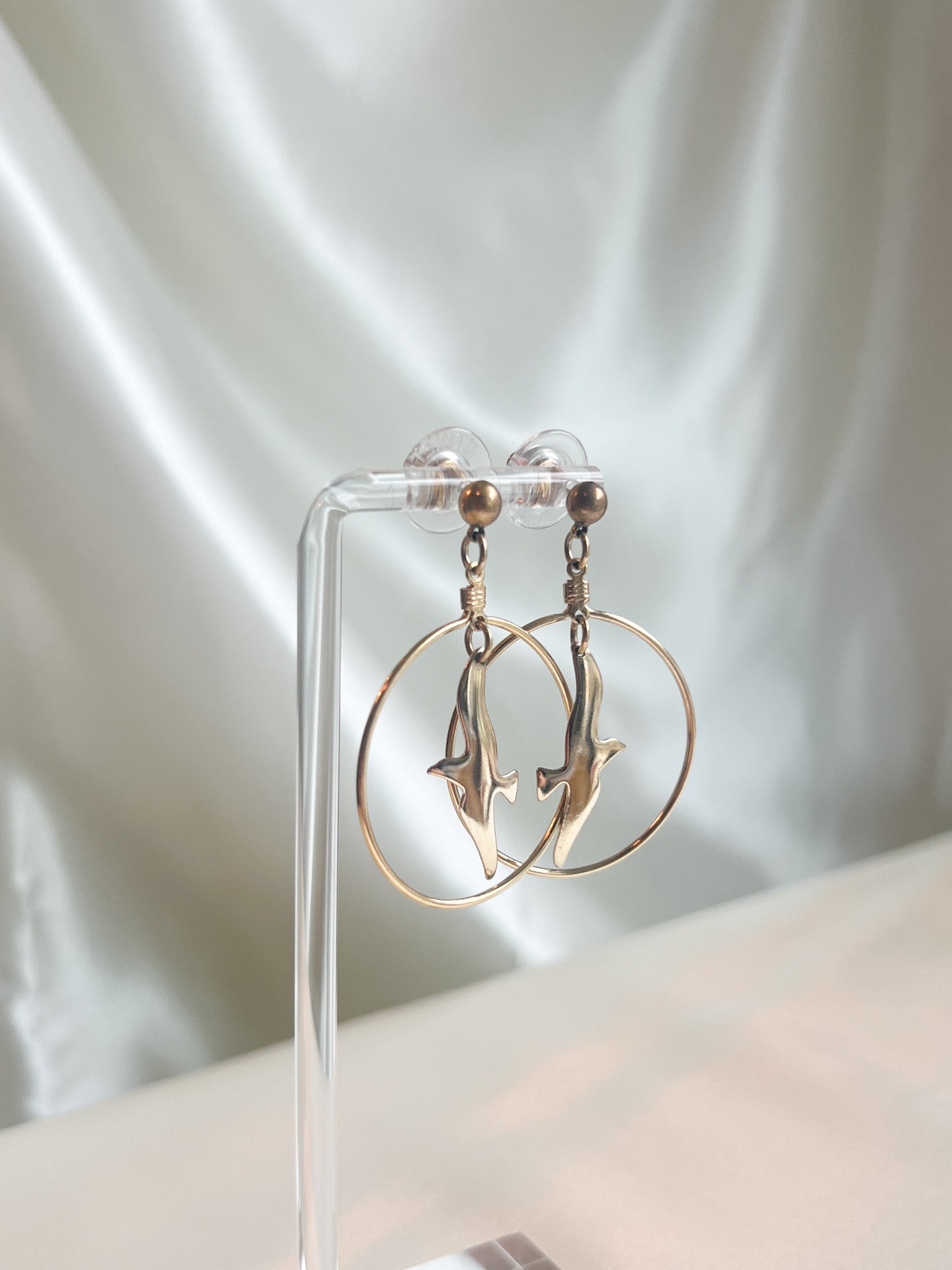 Dangle hoop earrings with bird details
